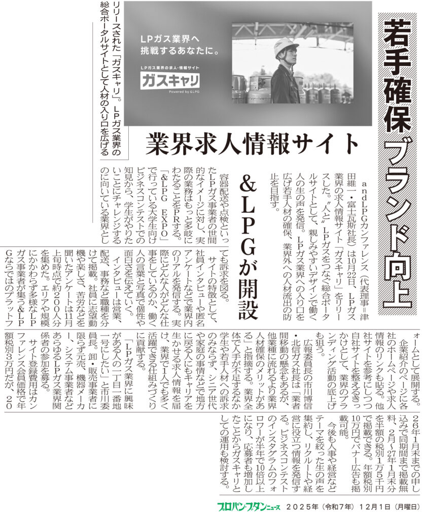プロパン・ブタンニュースに掲載いただきました。